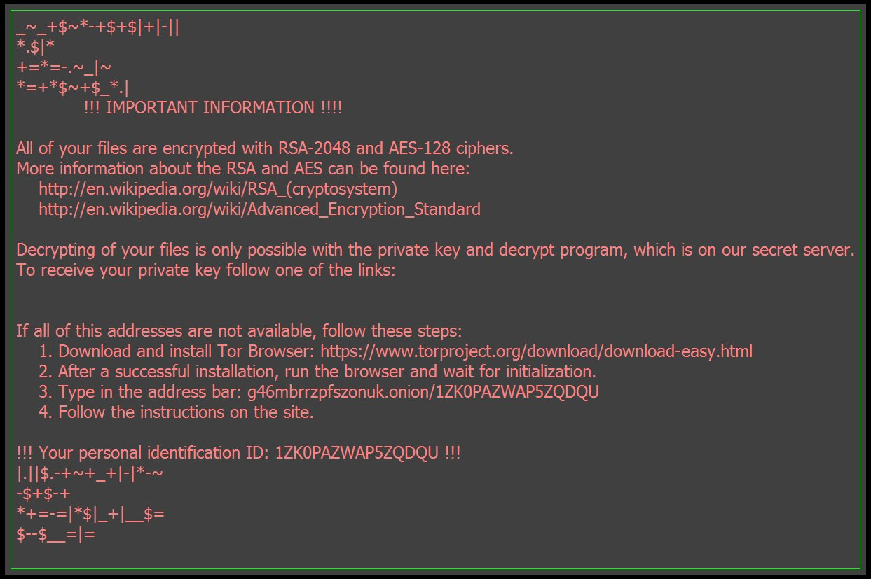 The encrypted files have ‘osiris’ extension and an html file containing detailed instructions on decrypting the file (with ransom payment) is written to each folder with encrypted files.