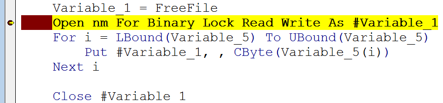 Variable_5(1 + 2) = CByte(40 + 104) '<-- decimal 144